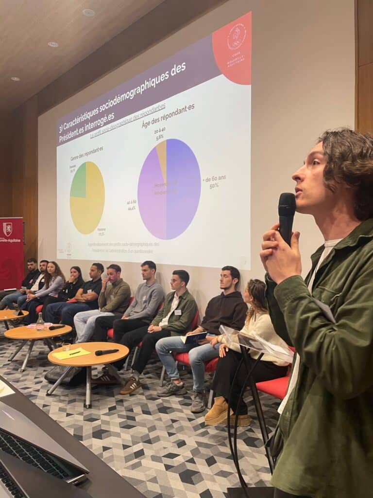 Menée en collaboration avec l’Université de Bordeaux, cette étude s’appuie notamment sur un travail de terrain réalisé par des étudiants STAPS en Master 1 et 2, option GSDT. Le CROS tient à remercier Marina Honta pour son engagement dans cette collaboration, ainsi que pour le suivi et l’accompagnement des étudiants mobilisés.