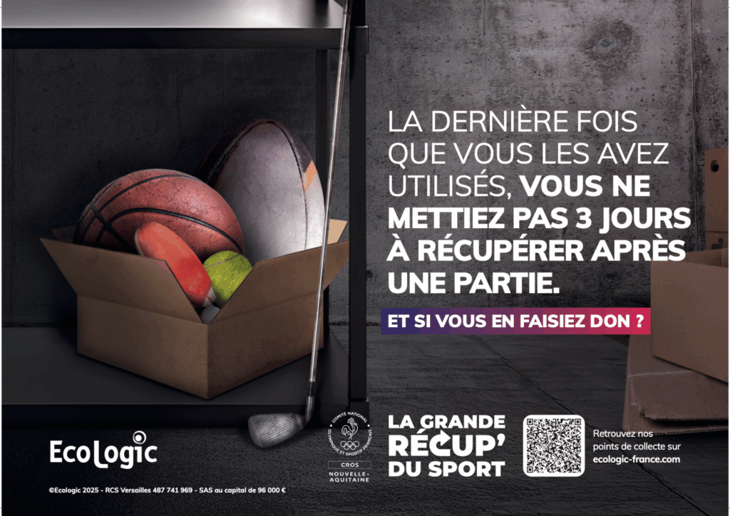 À l’occasion de la Fête du Sport, le samedi 14 septembre 2025, le CROS Nouvelle-Aquitaine s’associe à l’éco-organisme ECOLOGIC pour participer à une opération inédite de recyclage : « La grande récup du sport ».